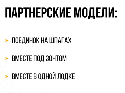 В отношениях с партнерами внутренними мы с вами эти три модели ровно так же и юзаем.